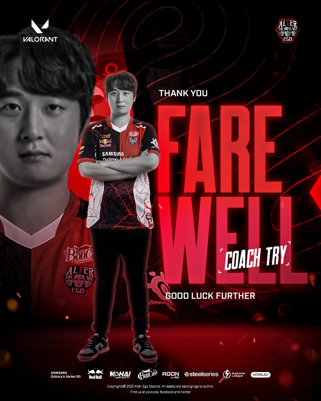 INDONESIA – Alter Ego have announced that Kang "TRY" Tae-wook will no longer be the team’s coach, a position he held for over ten months after being announced in May 2022. The announcement came right after VCL Indonesia Split 1, in which Alter Ego finished 5-6th, just one place below the Split 2 qualification zone.