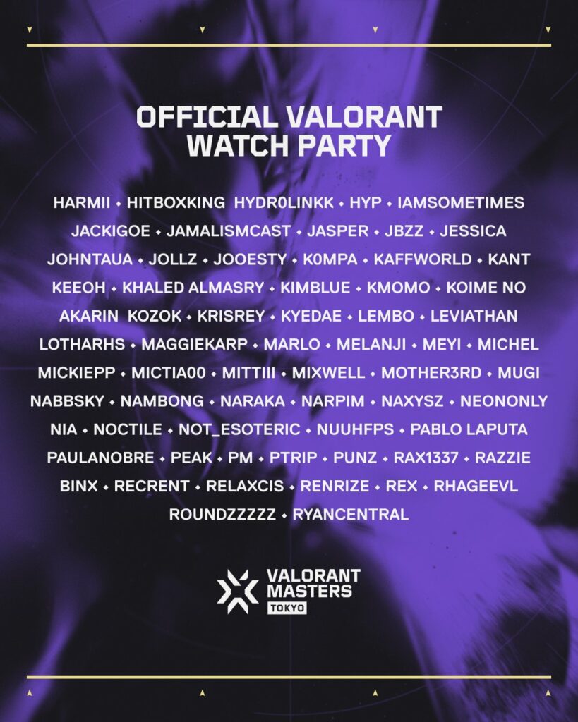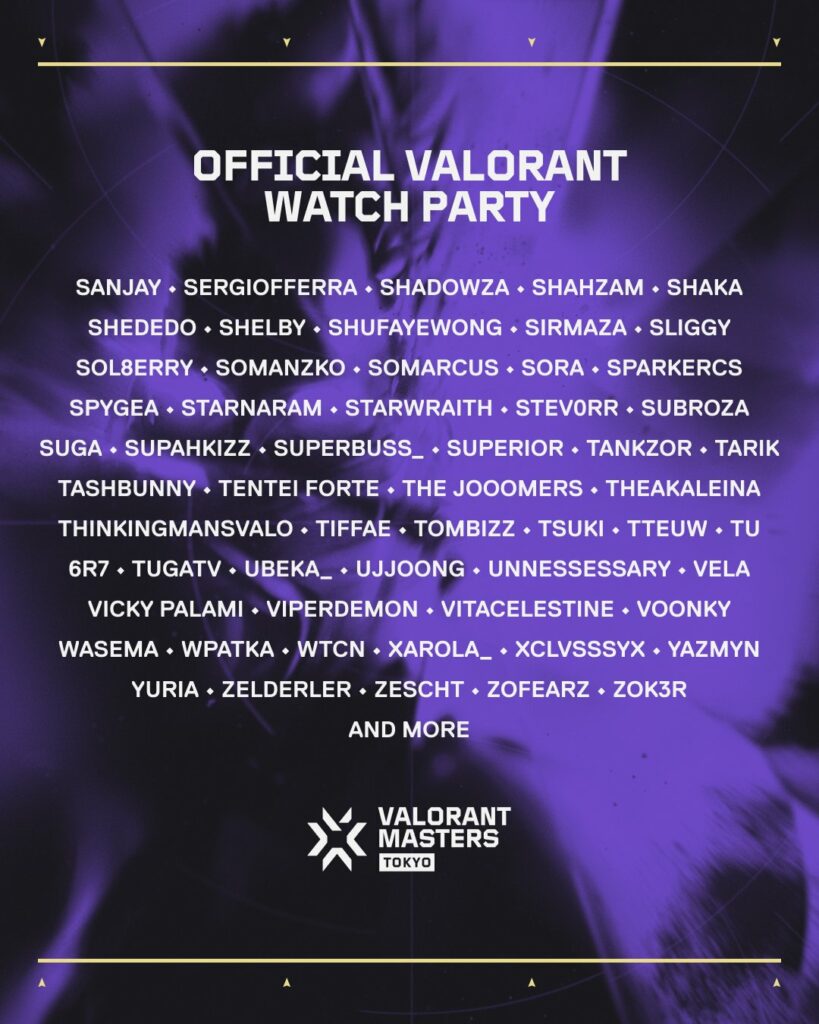 Official VALORANT has confirmed the official co-streamers list for the event, listing hundreds of renowned streamers from all over the world. Jonas "AverageJonas" Navarsete, “Clutch_Fi”, Jeremy "Disguised Toast" Wang, Atthasid "ZoFeaRz" Intravichai, Antonius "Son" Willson, Melanie "meL" Capone, and “Shu Faye Wong” are among the group of co-streamers for VALORANT Masters Tokyo.